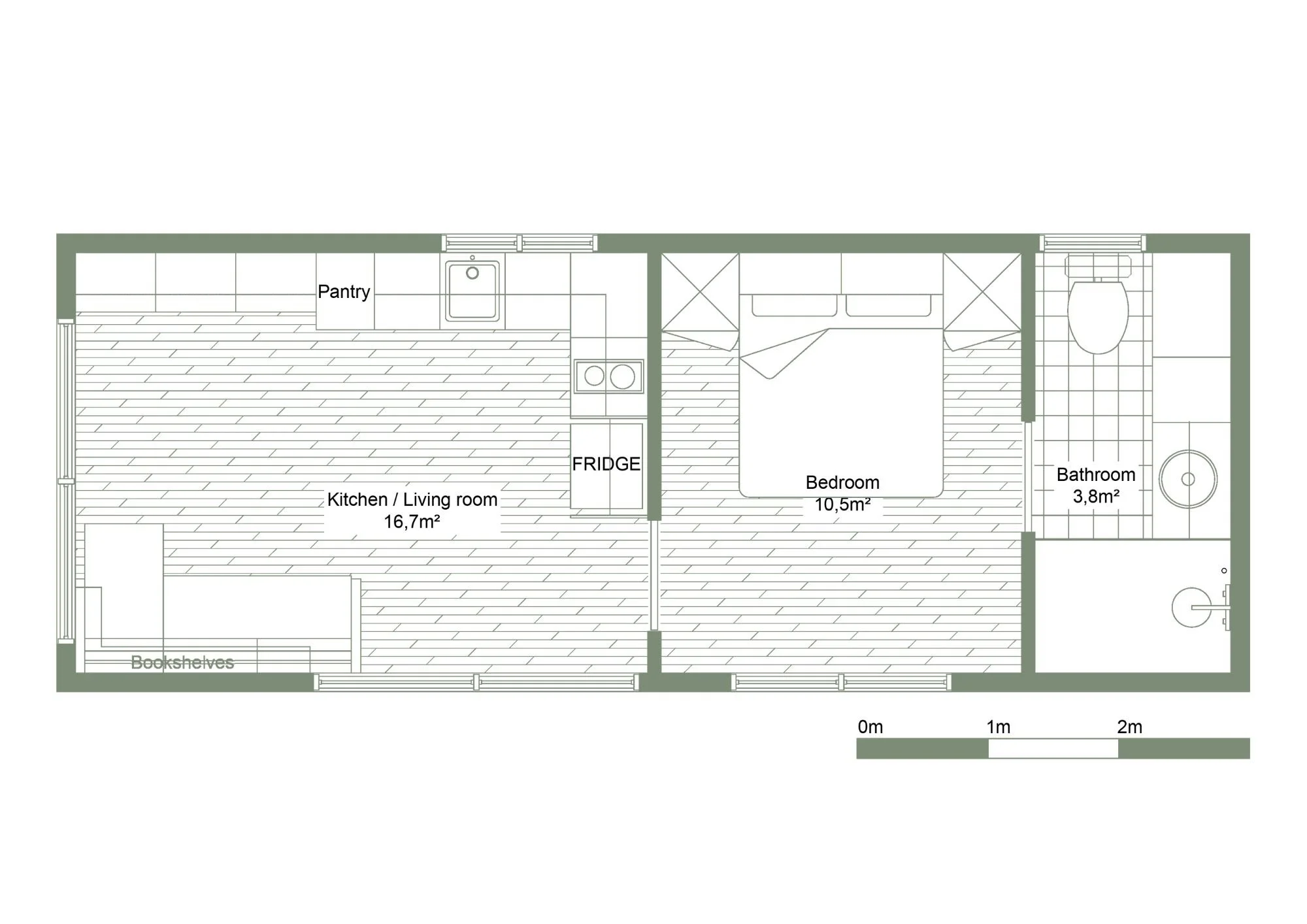 9 m x 3.45 m (31 sqm)